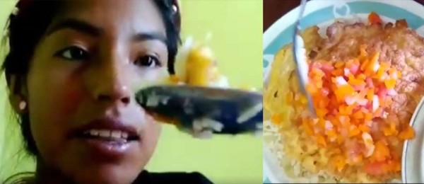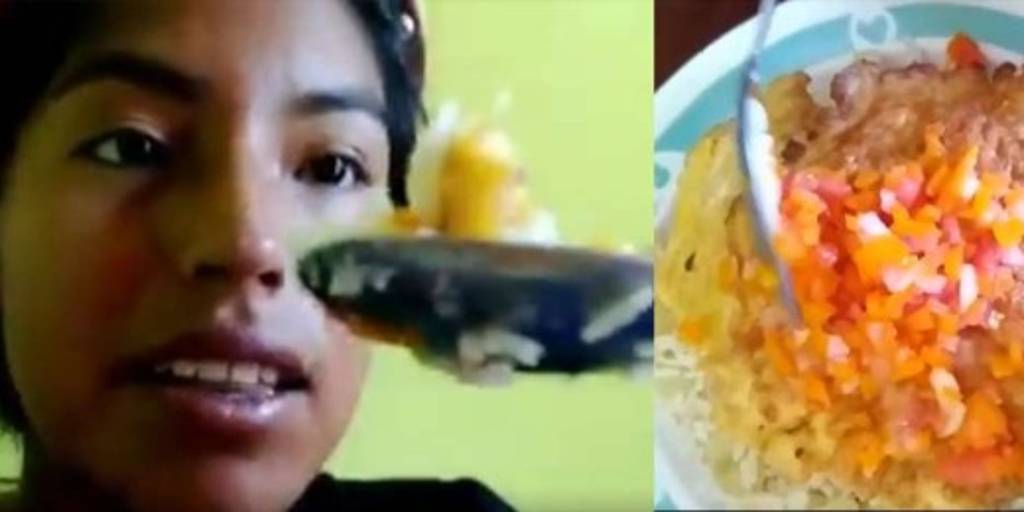 Esta peculiar opción gastronómica fue acompañada con arroz y una ensalada de zanahoria, tomate y cebolla. “De verdad que riquito está, ve que no necesitan ni carne para darse sus gustitos”, dice la carismática tiktoker tras probar su delicioso plato.