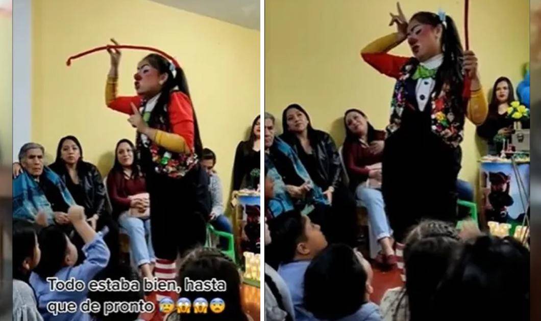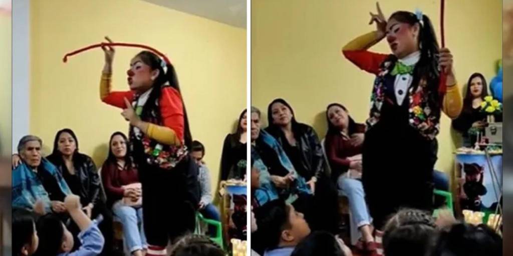 Durante la fiesta la payasita se encontraba haciendo un juego de hipnotizados y en un momento mencionó que iba a detectar, con una soga roja, si alguna mamá fue al cumpleaños solamente para comer o si un hombre le estaba siendo infiel a su pareja.