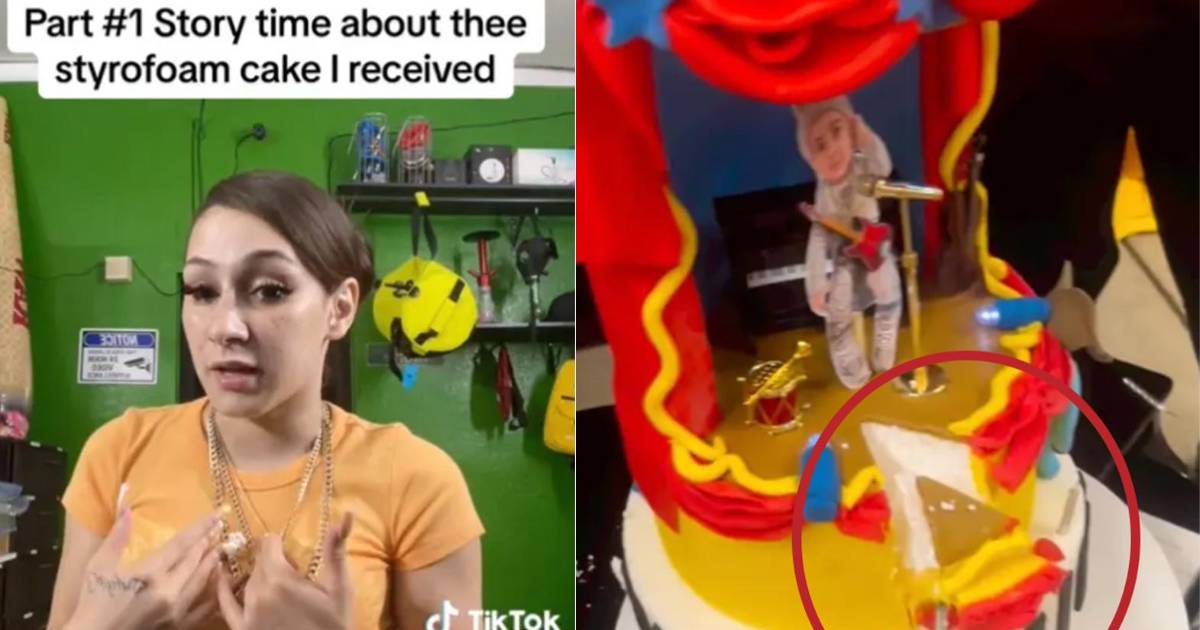 Una mujer pagó aproximadamente $us 800 por la torta de cumpleaños de su hijo, pero cuando llegó el pedido le llegó un pastel hecho de espuma de poliestireno, aseguró una mamá que se hace llamar “thebabyshay” en TikTok.