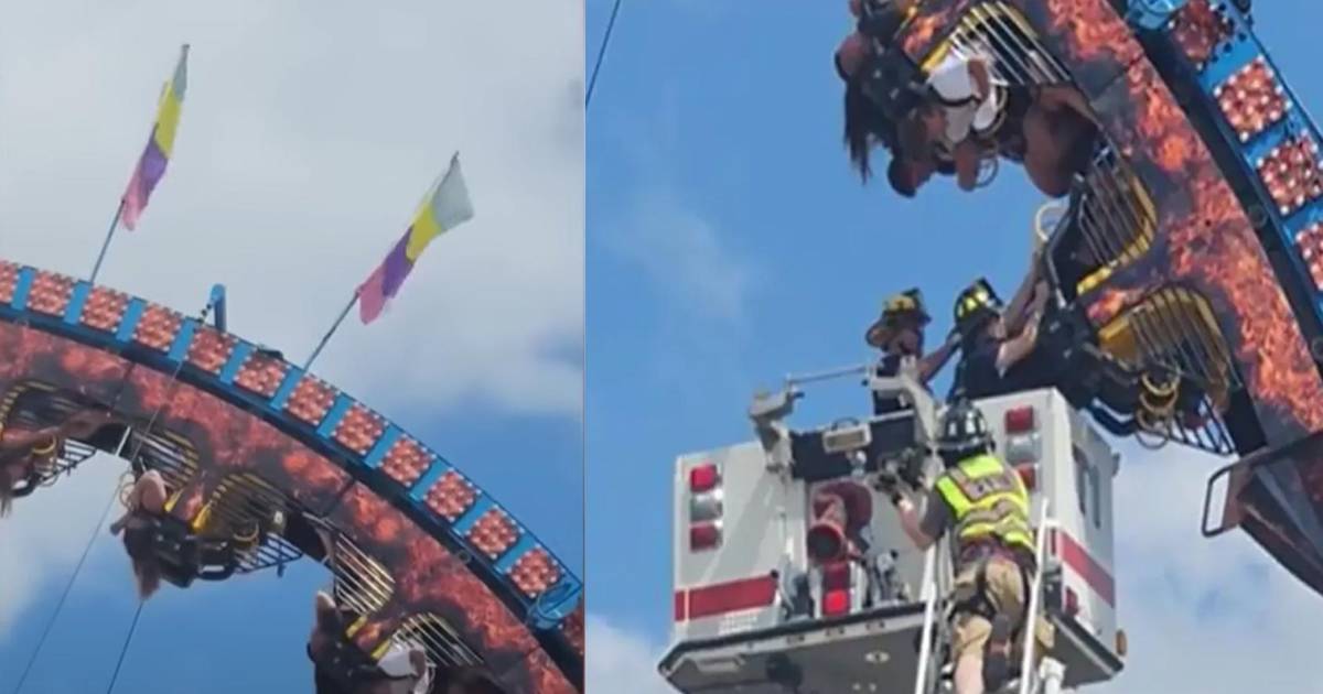 Una falla mecánica hizo que una montaña rusa se detenga y deje atrapadas a ocho personas que disfrutaban del juego. Mire el impresionante momento