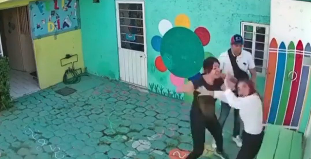 Padres de familia agarraron a golpes a una profesora en una guardería en México después de que su hijo llegara a su casa, del centro infantil, con una quemadura. Una cámara de seguridad captó las imágenes del suceso, que ya se han convertido en virales tras extenderse más allá del país a través de las redes sociales.