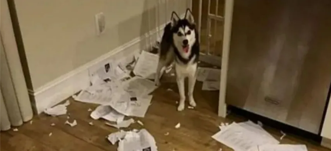 Fue entonces cuando su perro Alaska, de raza Husky, no pensó dos veces para destrozar estos valiosos papeles académicos.