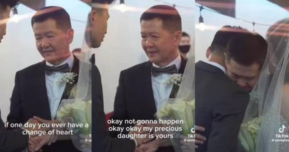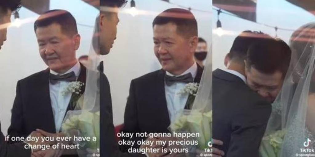 Es precisamente el momento en el que el padre de la novia está a punto de dejar a su hija en el altar, donde al momento de entregar las manos de su “pequeña” a su futuro esposo se dirige a él totalmente conmovido.
