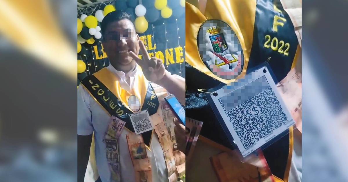 En las imágenes se puede ver como uno de los invitados escanea el código para hacer el depósito mientras el graduado está muy sonriente. Entre los comentarios, los usuarios destacaron la idea de Joel y alguno escribió “para que no anden diciendo, te debo tu regalo, ya no hay excusas”, dijo.
