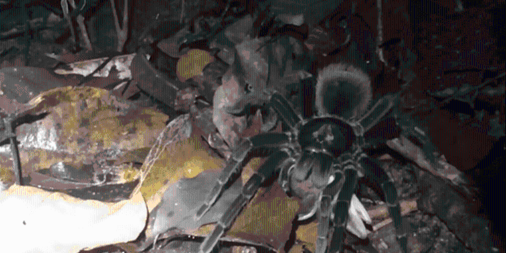 Lo que vieron los impresionó, al acercarse para verificar la situación, vieron a la gran tarántula encima de una zarigüeya, que ya había sido atrapada por el animal arácnido y aún peleaba débilmente por su vida, pero luego de 30 segundos dejó de moverse.