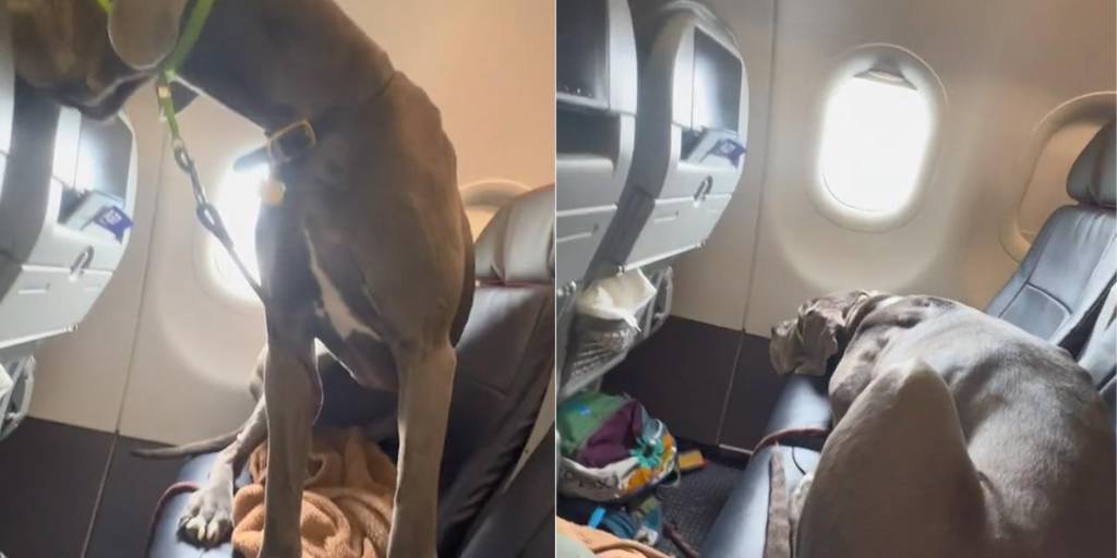 Video: Compró dos pasajes de avión para que su perro de raza gran danés pueda viajar con él