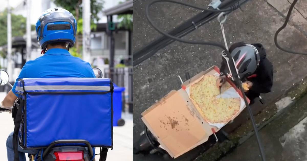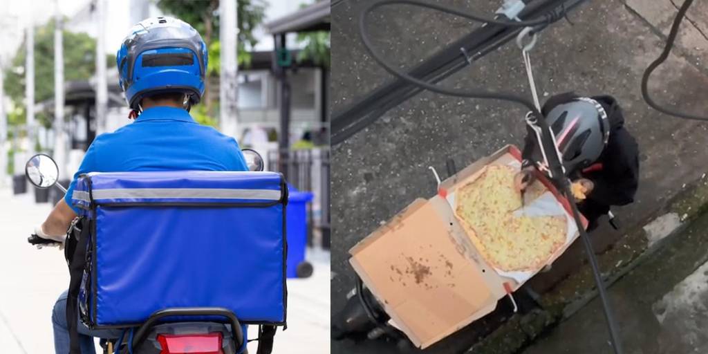 Video: Delivery tenía que entregar una pizza, pero sucumbió ante la tentación