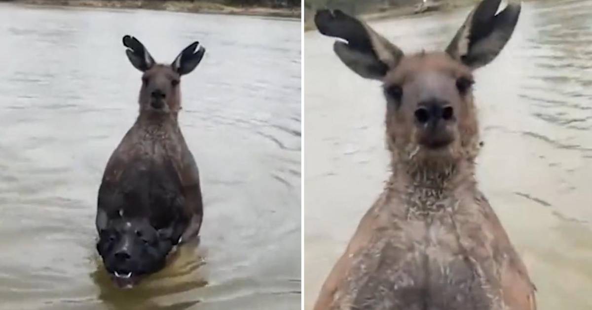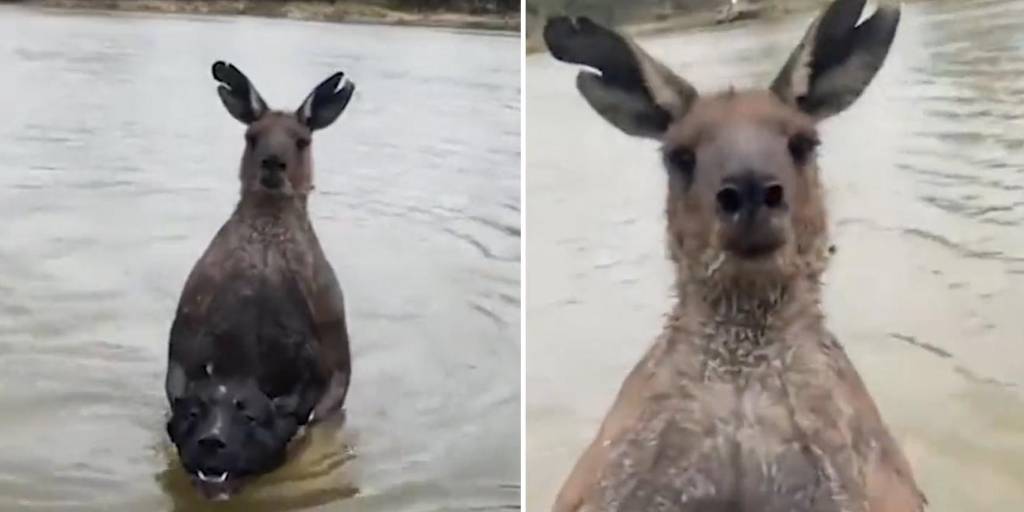 En un clip que muestra el rescate, se ve al canguro sometiendo al perro en un río. Al percatarse de la agresión, el sujeto se sumergió en el agua para enfrentarse al canguro al que empujó para que suelte a su mascota.