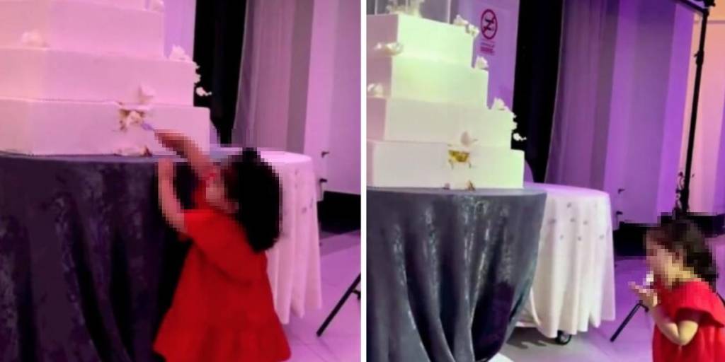 Pero en una boda mexicana, imágenes de una niña se han viralizado debido a que la pequeña no se resistió y sacó una porción del pastel antes de que lo repartan. Uno de los invitados capturó en un video este inusual momento.