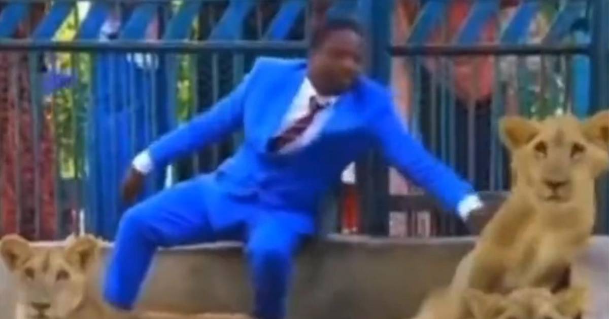 El hombre llevó a un grupo de feligreses donde se encontraban unos leones y se metió a su jaula para demostrar que “nada puede pasarle a una persona de Dios”. Aunque no se conoce el nombre del pastor, el sujeto causó asombro tras entrar donde estos animales.