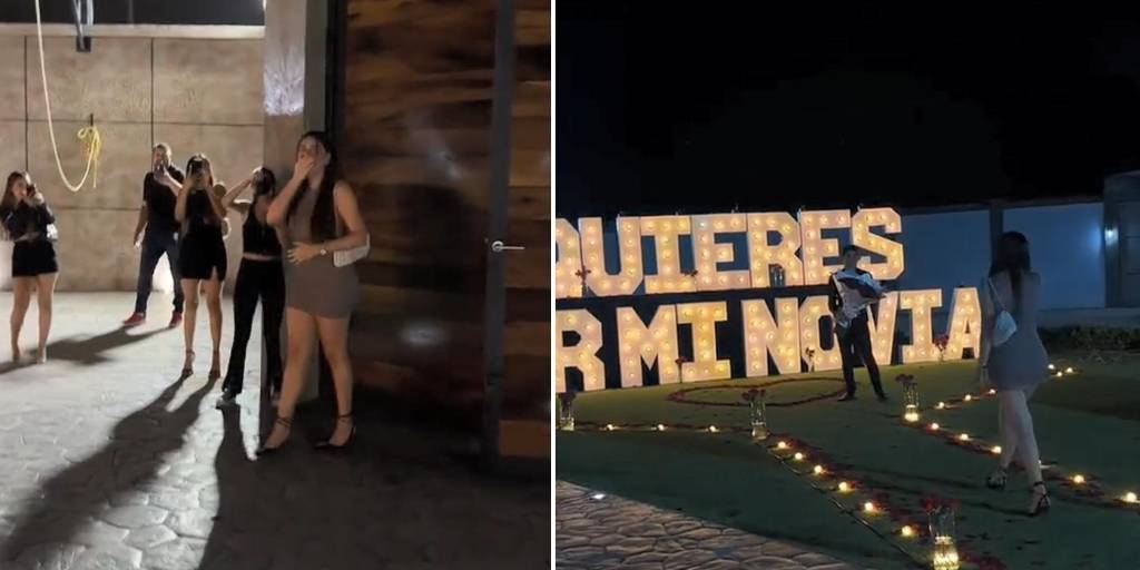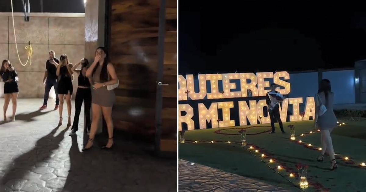 La propuesta se viralizó en redes sociales debido a la magnitud del momento. En videos e imágenes que circularon, se ve como la joven al parecer no sabe nada y cuando ingresa al lugar de la cita se encuentra con el impresionante escenario.