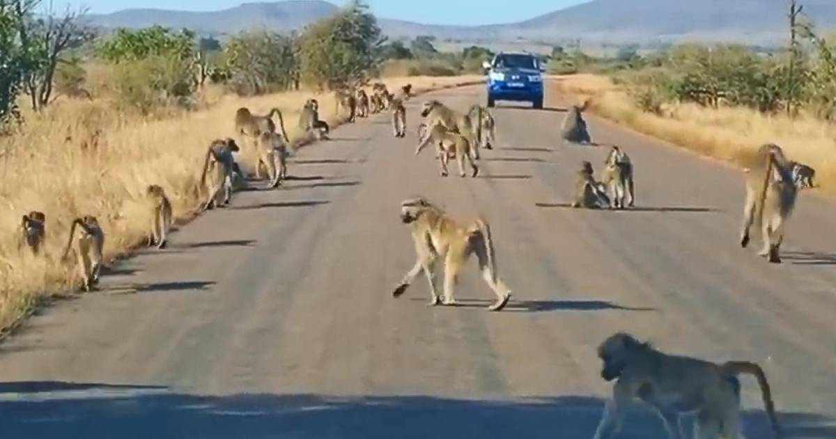 [Foto: New York Post] / Decenas de monos caminan en el Parque Kruger