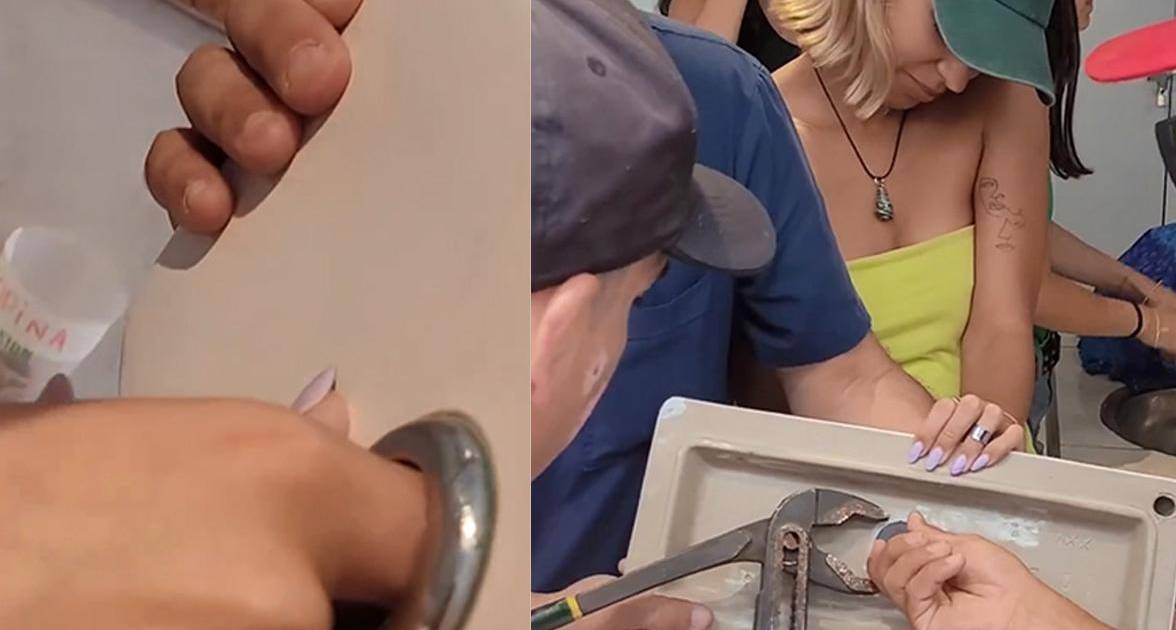 En un momento, uno de los doctores le dijo “si no sale, cortamos el dedo ¿Qué te parece?”, le preguntó, sin embargo respondió con una expresión de negación ante la consulta. Al viralizarse los videos que otras personas grabaron, a través de sus historias de Instagram, Manuela aceptó que era ella la mujer que quedó con el dedo atrapado en el inodoro.