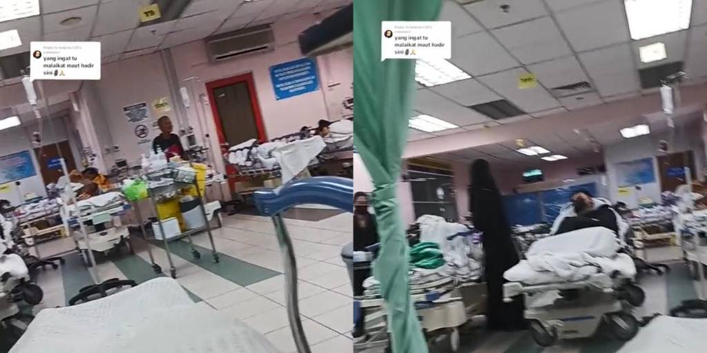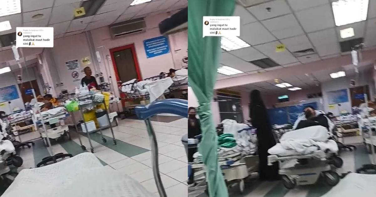 Pero lo que llamó la atención es que, esta persona está vistiendo un “sudario” negro y tanto el paciente como la persona que se encuentra cuidándolo no se dan cuenta de su presencia. A través de la cuenta “ssyazwanieee_” se compartió este inusual hecho que a criterio de la mujer le provocó pánico.