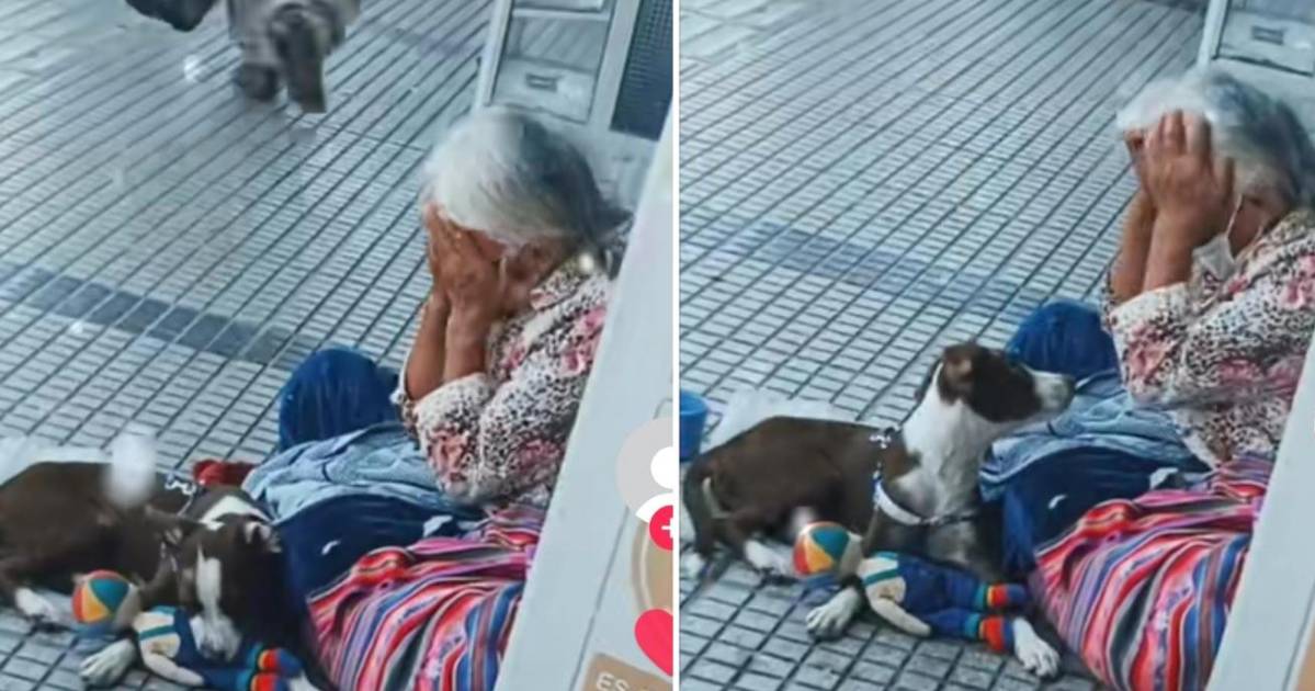 Una adulta mayor que pedía limosna en una calle realizó unos movimientos que reflejaron un momento de desesperación. Mira cómo reaccionó su mascota