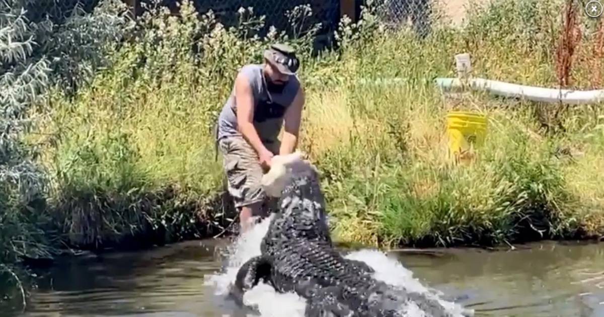 Un hombre que forma parte del personal de un parque que alimentaba a un caimán fue atacado tras intentar alimentar al animal. Integrantes del centro ‘Colorado Gator Farm’ mostraron el angustiante momento.