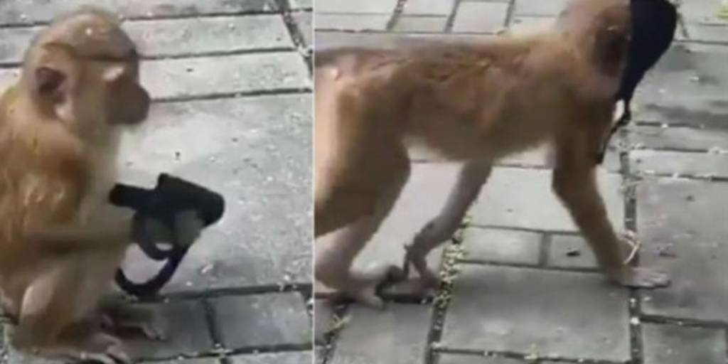 Un pequeño mono se ha vuelto viral en redes sociales luego de ser captado en un video cómo recoge un barbijo que estaba tirado en la calle y lo utiliza correctamente.