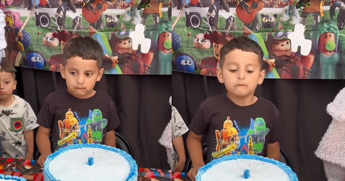 Una fiesta de cumpleaños no puede estar completa si no se tiene la tradicional torta y esto fue lo que no faltó en el festejo de un pequeño que se viralizó por su extraña reacción al ver su pastel mientras le cantaban.